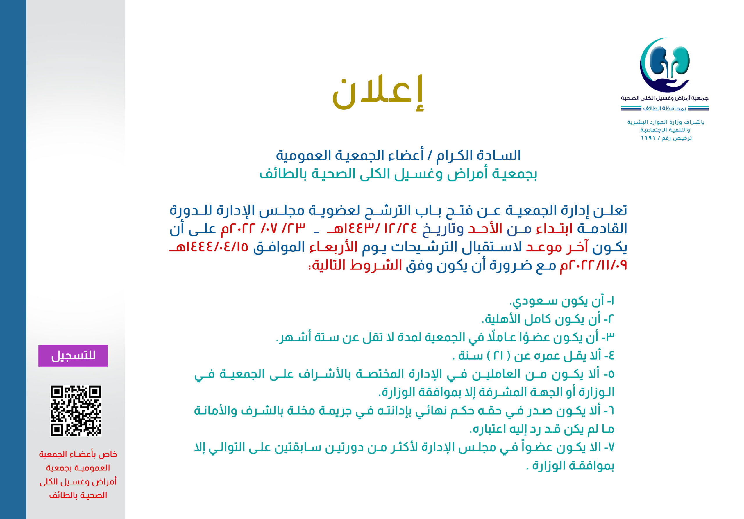 جميع حقوق الطبع و النشر محفوظة @لجمعية أمراض و غسيل الكلي الصحية بمحافظة الطائف