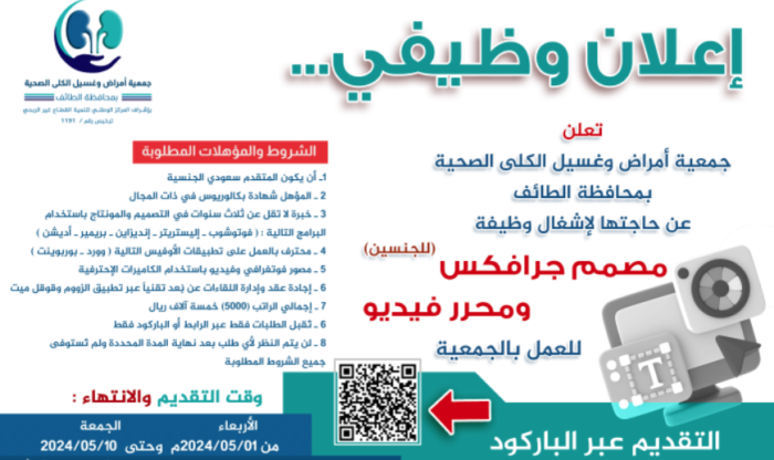 إعلان عن شاغر وظيفي لمصمم جرافكس ومحرر فيديو